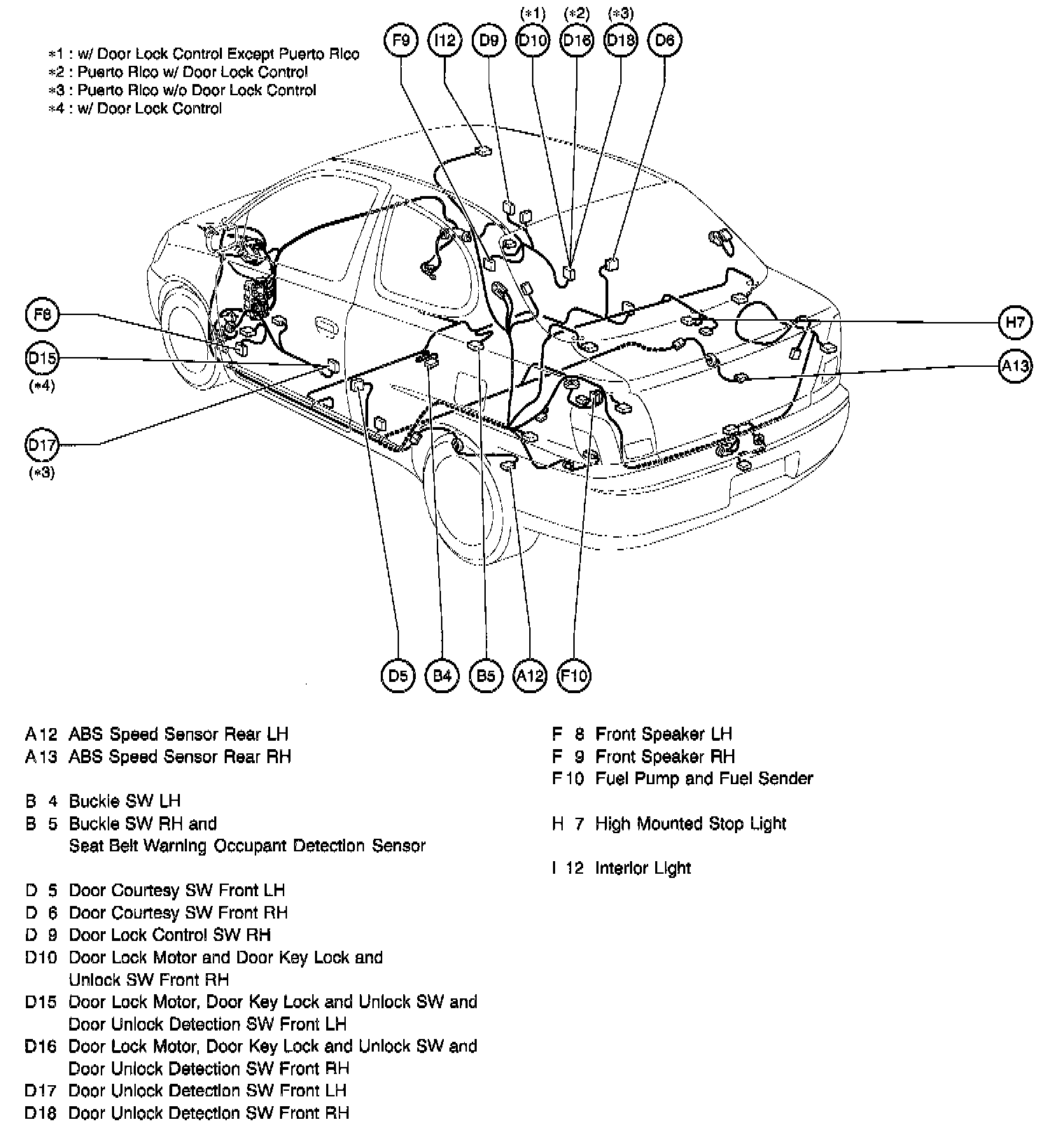 D15 Door Lock Motor, Door Key Lock and Unlock SW and Door Unlock Detection SW Front LH