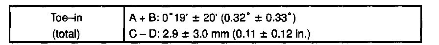 If the toe-in is not within the specified value, inspect and place the suspension parts as necessary.