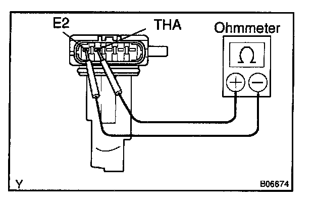 Using an ohmmeter, measure the resistance between terminals THA and E2.