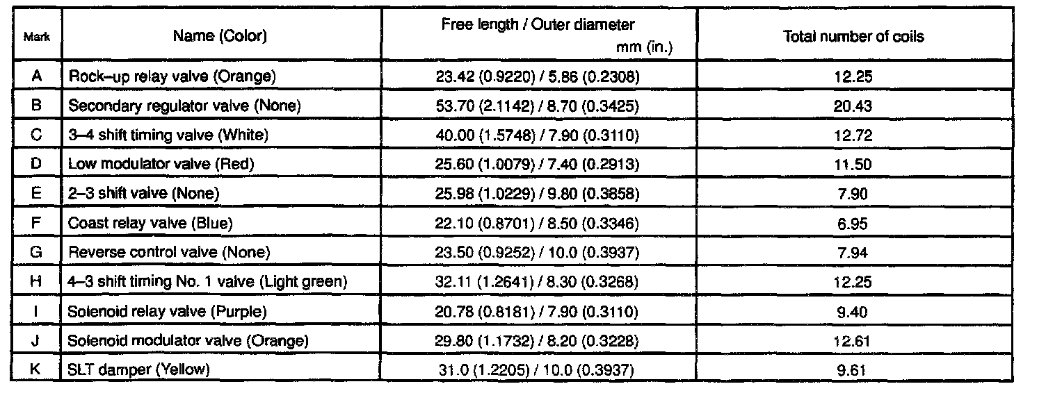HINT: During reassembly, please refer to the spring specifications below to help you differentiate among the different springs.