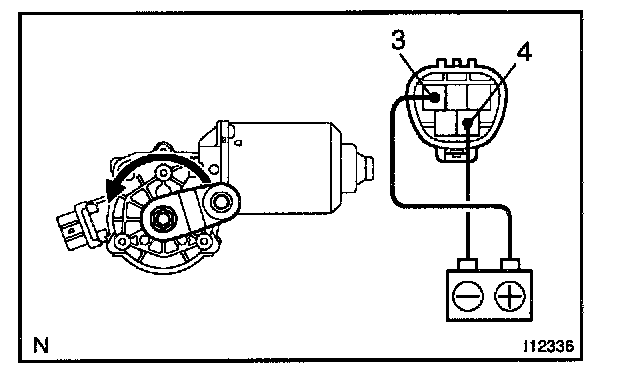 Connect the positive (+) lead from the battery to terminal 3 and the negative (-) lead to terminal 4, check that the motor operates at high speed.