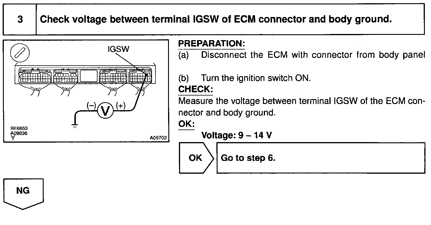 This signal causes current to flow to the coil, closing the contacts of the EFI main relay and supplying power to terminals +B of the ECM.
