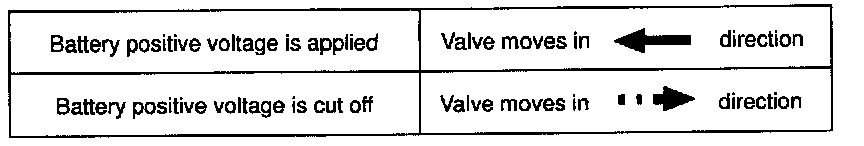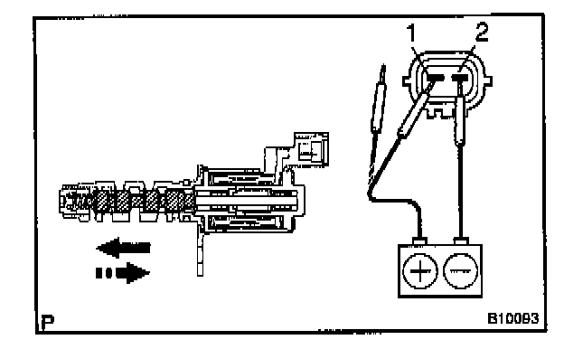 Connect the positive (+) lead from the battery to terminal 1 and negative (-) lead to terminal 2, and check the movement of the valve.