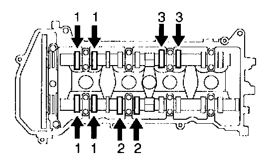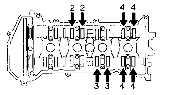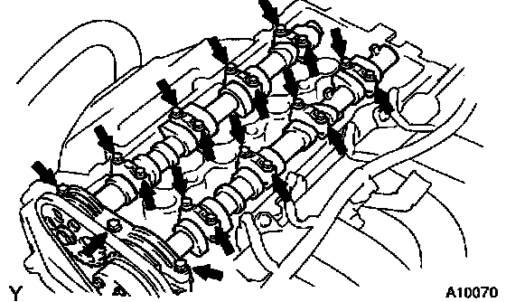 (1) Remove the 19 bolts and 9 camshaft bearing caps.