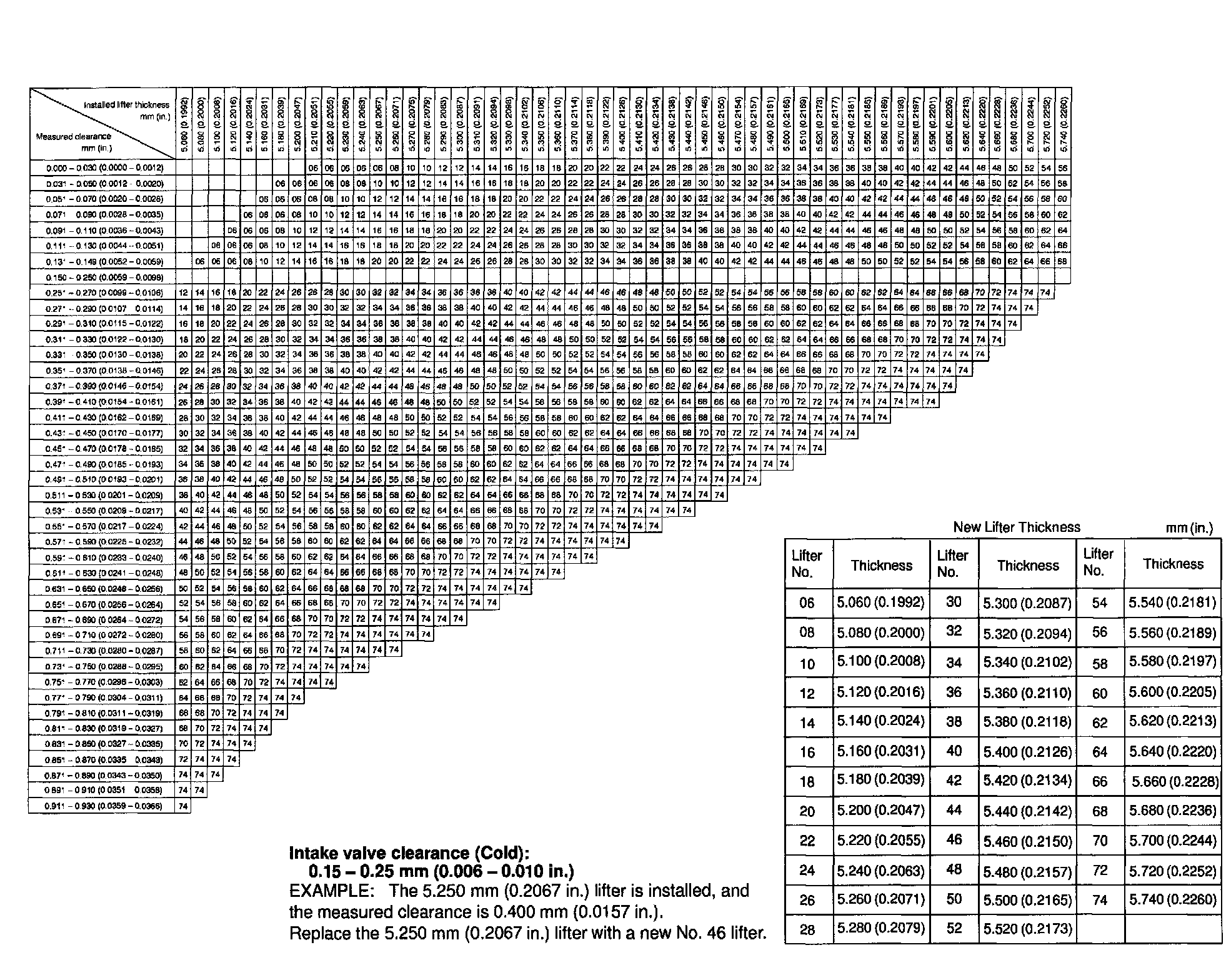 - Calculate the thickness of a new lifter so the valve clearance comes within the specified value.