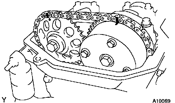 b) Place matchmarks on the timing chain and camshaft timing sprockets.