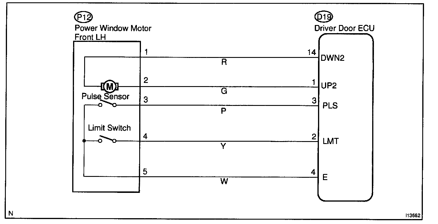 Jam protection pulse switch is built-in the power window motor. Pulse switch outputs