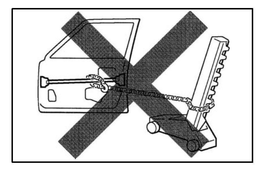 For impact beam, we use special high tensile strength steel. The high tensile strength steel maintains its special crystalline organization by heat treatment or alloy additives. Since these parts were designed to exhibit a 100% performance when they were in their original shape, if they are deformed in an accident, or if the deformed parts are repaired and reused, they become unable to exhibit the same performance as intended in the design. It is necessary to replace the door assembly when impact beam or bracket is damaged.