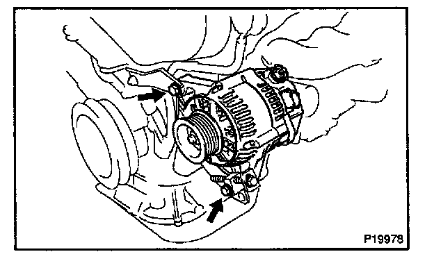 a. Mount generator on the generator bracket with the pivot bolt and adjusting lock bolt. Do not tighten the bolts yet.