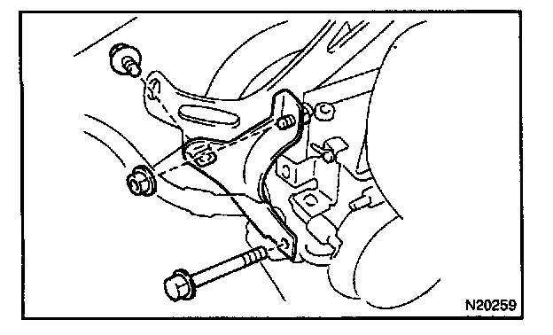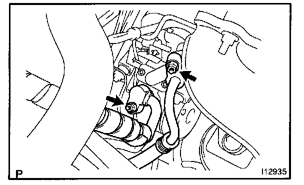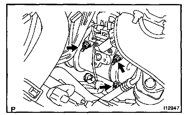 c. Remove the 2 bolts, nut and drive belt adjusting bar bracket.