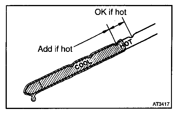 - Only use the COOL range on the dipstick as a rough reference when the fluid is replaced or the engine does not run.