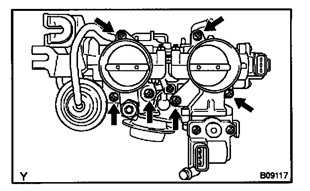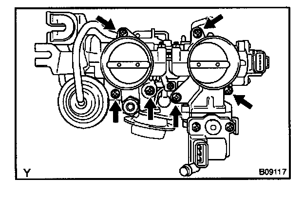 d. Reinstall a new No.1 throttle body and No.2 throttle body with the 6 screws.