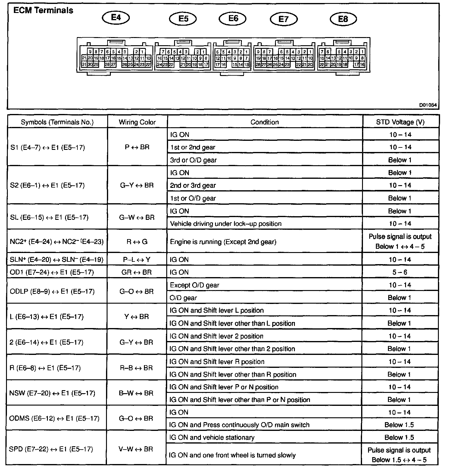 Pinout Values and Diagnostic Parameters