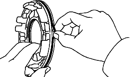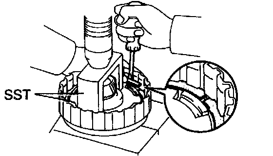 c. Using a screwdriver, install the snap ring. Be sure end gap of snap ring is aligned with the groove of the clutch drum.