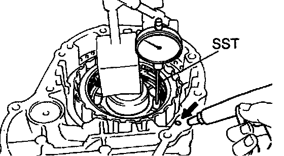 Install a dial indicator and measuring terminal Special Service Tool (SST) together, measure the piston stroke while applying and releasing compressed air (392 - 785 kPa, 4 - 8 kgf/cm2, 57 - 114 psi)