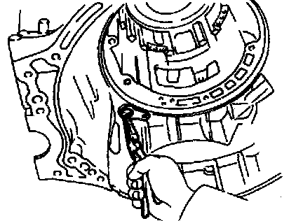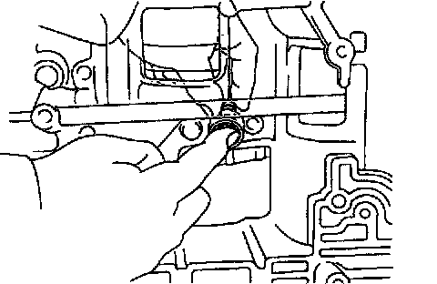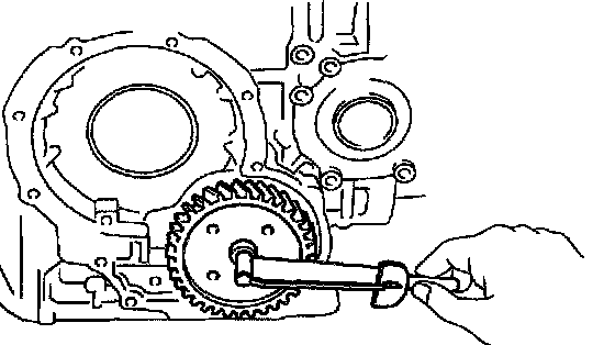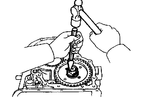 b. Install the bar into the case hole to drive out the drive pinion.