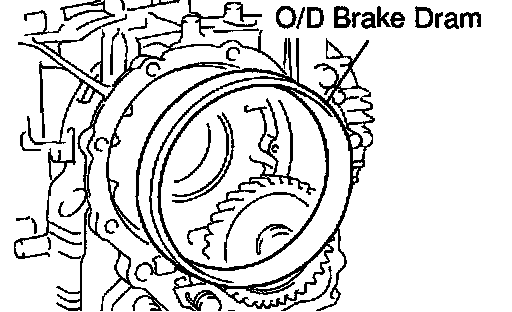 d. Remove the O/D brake drum from the transaxle case.