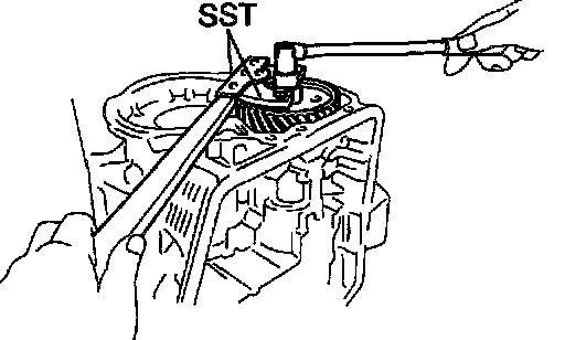 b. Using SST to hold the gear, remove the nut.