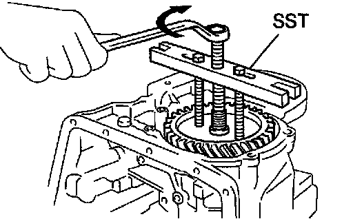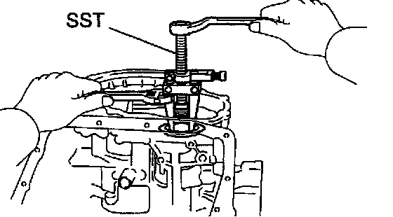 a. Place SST, compress the return spring evenly by tightening the bolt gradually.