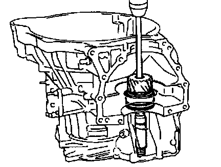 c. Using a press, drive out the drive pinion from the transaxle case.