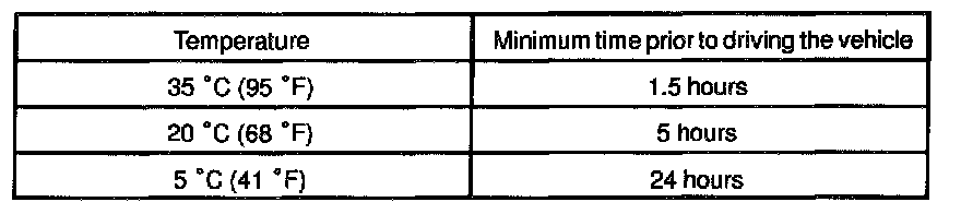 NOTE: Take care not to drive the vehicle during the time described in the table.
