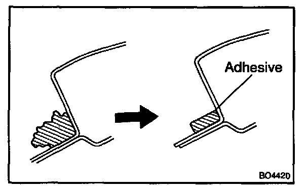 c. Coat the glass with adhesive as shown in the illustration.