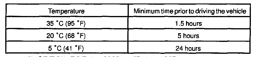 NOTE: Take care not to drive the vehicle during the time described in the table.