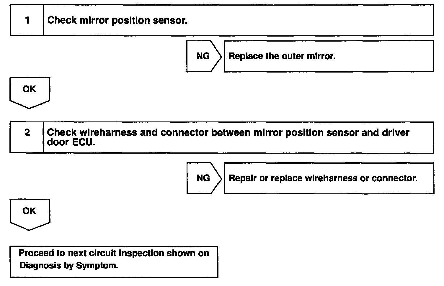 CIRCUIT DESCRIPTIONThis position detected by the mirror position sensor will be memorized in the seat ECU. This sensor is equipped in the mirror in spite of the existence of the memory function.