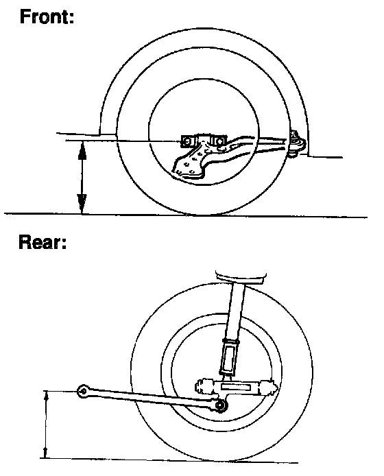 Measure the distance from the ground to the center of the front side lower suspension arm mounting bolt.