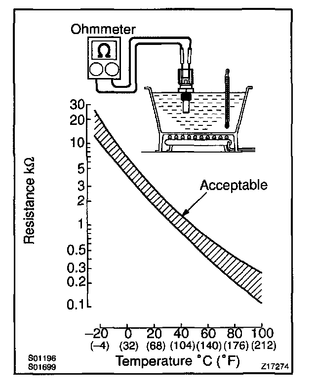 Coolant Temperature Sensor/Switch (For Computer): Testing and Inspection