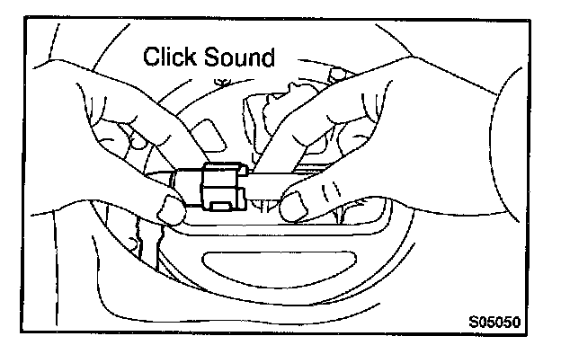 4. Match the axis of the connector with axis of the pipe, and push in the connector until the retainer makes a "click" sound. In case that the connections is tight, apply little amount of new engine oil on the tip of the pipe.
