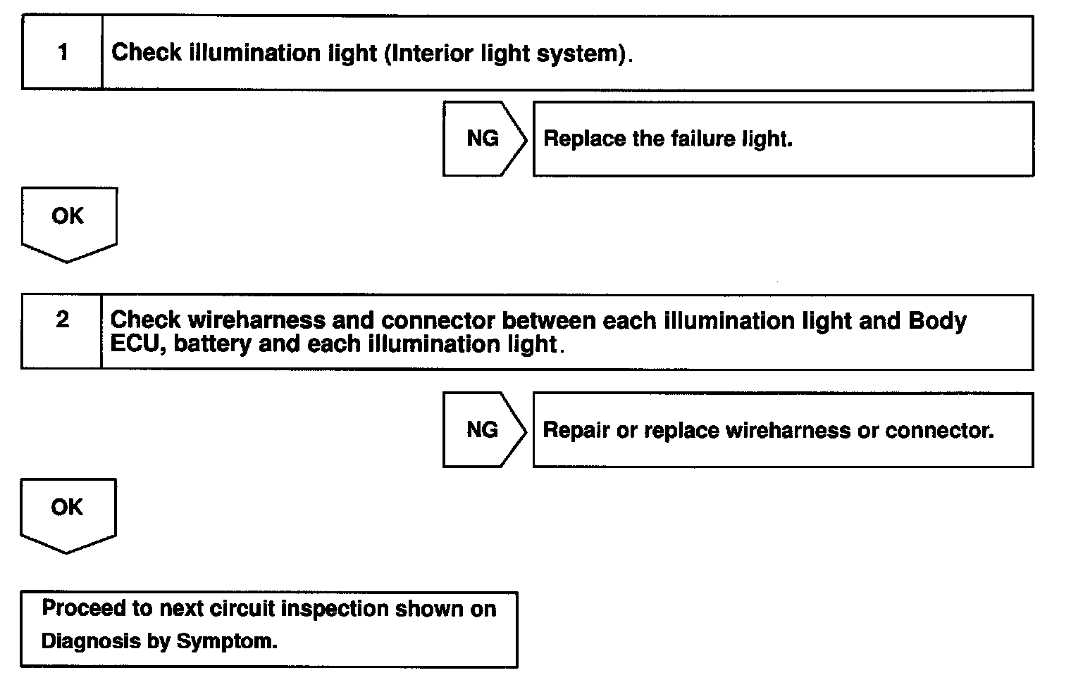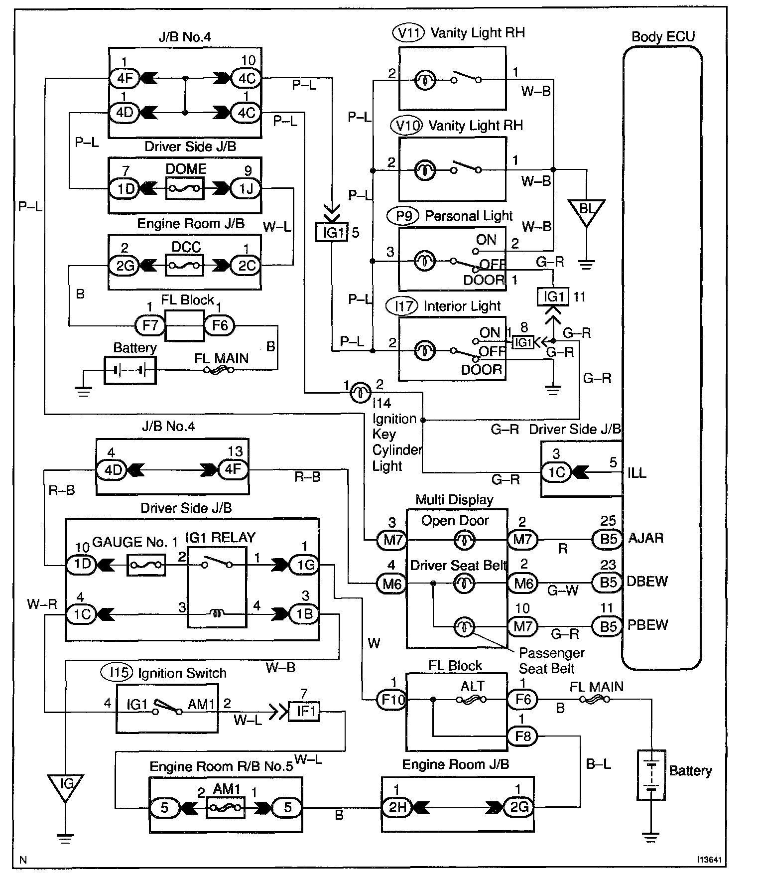 Receiving the courtesy signal from either of the door ECU, the Body ECU will make the interior light, ignition light, and foot light come on.