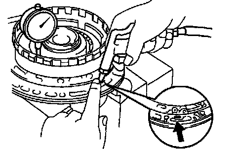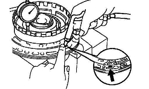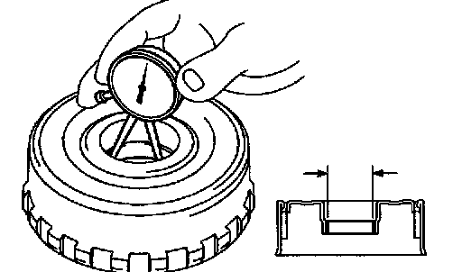Using a dial indicator, measure the inside diameter of the direct clutch bushing.