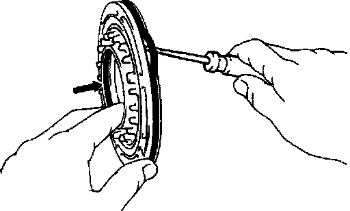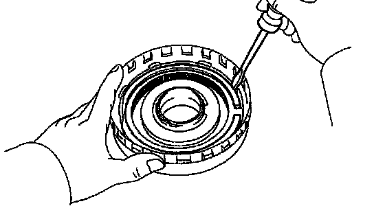 Using a screwdriver, remove the snap ring from the clutch drum.