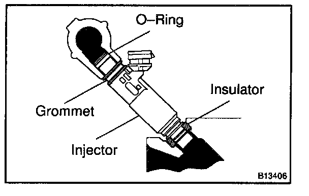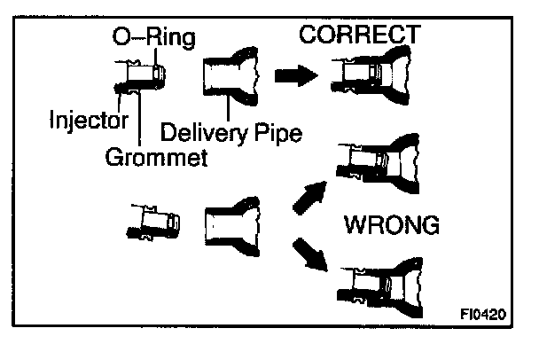 Before installing the injector, must apply spindle oil or gasoline on the place where a delivery pipe or an intake manifold touches an O-ring of the injector.