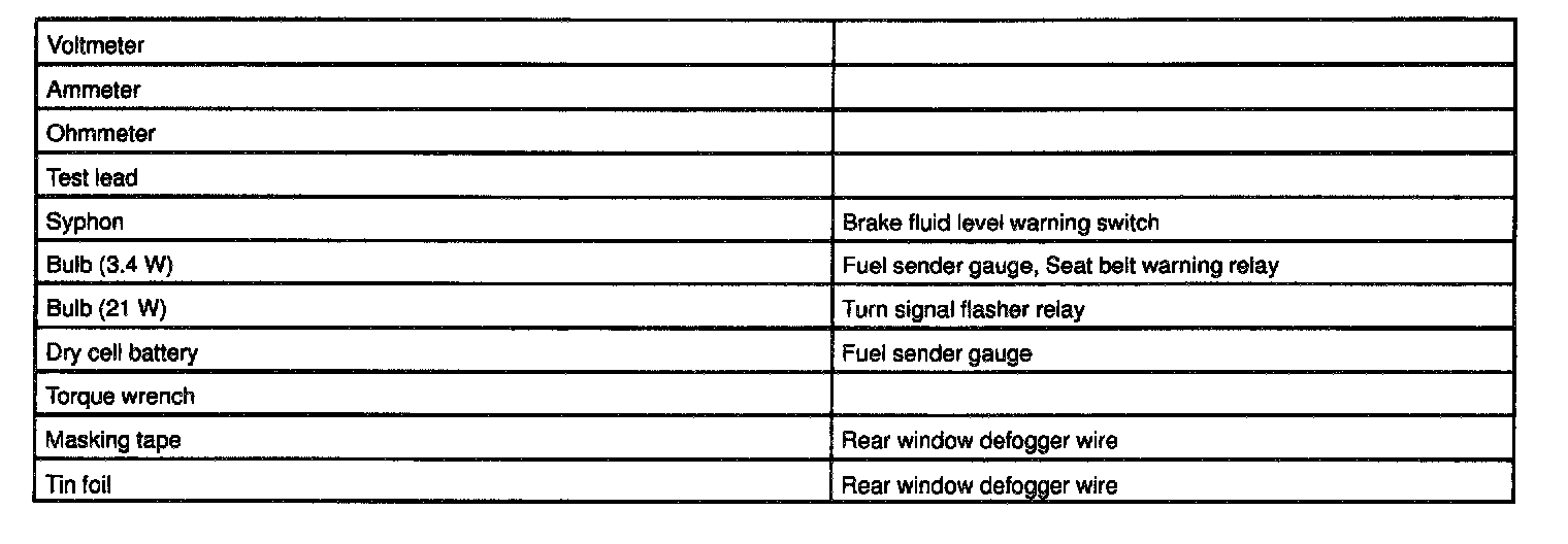 Body Electrical / Recommended Tools: