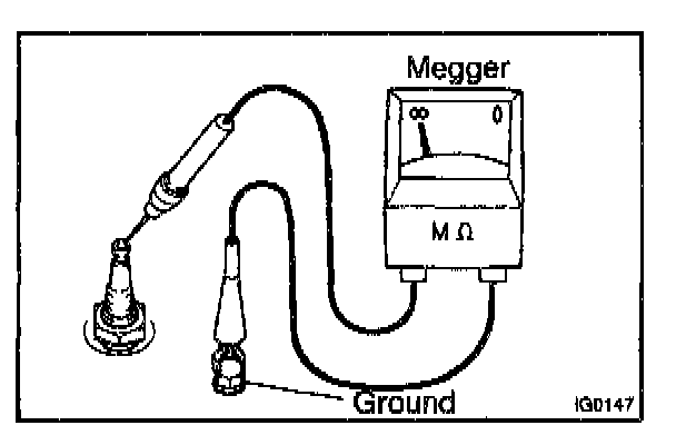 Using a megger (insulation resistance meter), measure the insulation resistance.