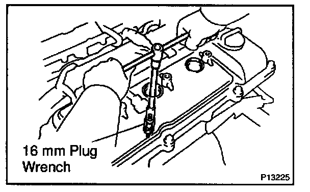 e. Using a 16 mm plug wrench, remove the 6 spark plugs from the RH and LH cylinder heads.
