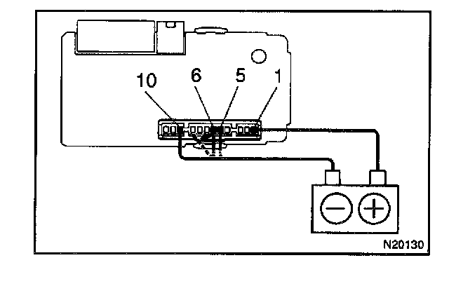 b. Connect the negative (-) lead from the battery to terminals 5, 6 and 10.