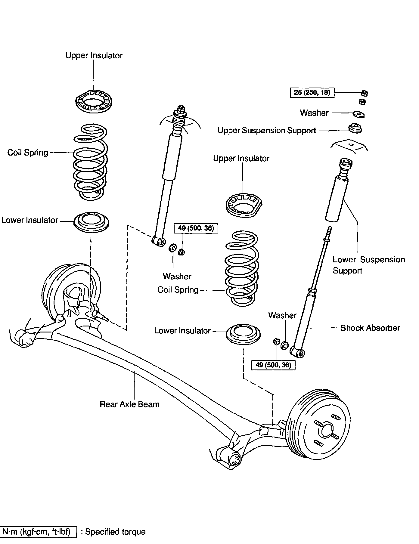 COIL SPRING AND REAR SHOCK ABSORBER REPLACEMENT AND OVERHAUL W/ RELATED COMPONENTS