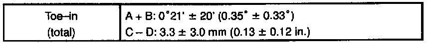 If the toe-in is not within the specified value, inspect and replace the suspension parts as necessary.