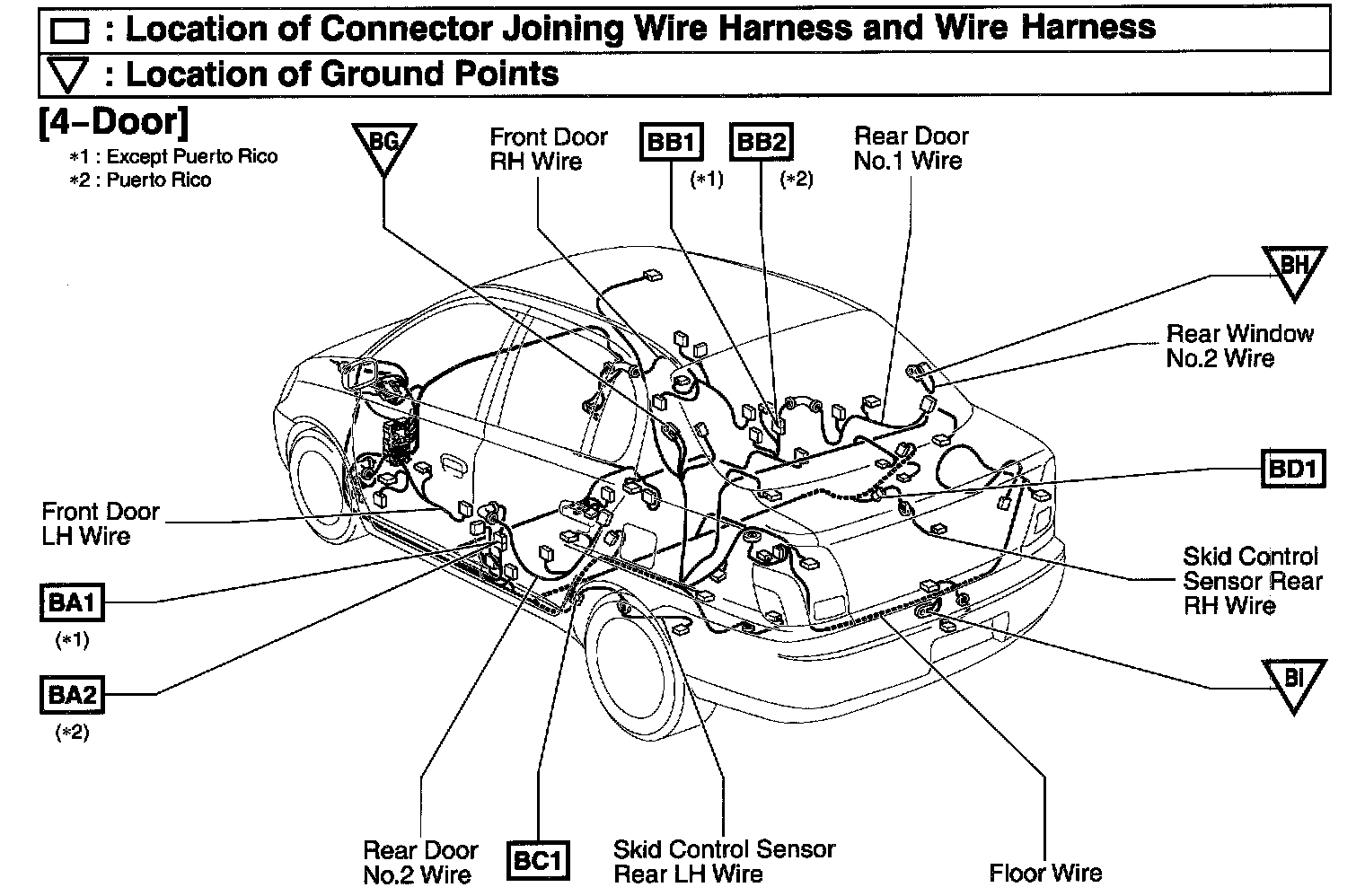 BA1 Rear Door No.2 Wire and Floor Wire (Under the Center Pillar LH)