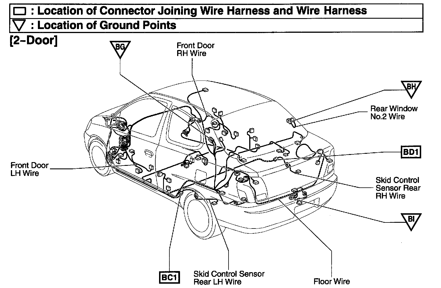 BD1 Skid Control Sensor Rear RH Wire and Floor wire (Front Side of the Quarter Wheel House Inner Panel RH)