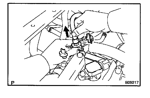 2. Get the metallic connector of the fuel tube assembly, pull it out towards the rear and hold it as it is.