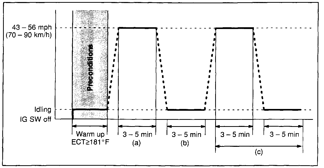 2a. Drive the vehicle at 50 - 65 mph (80 - 104 km/h) for about 15 minutes. (Refer to the illustration.)