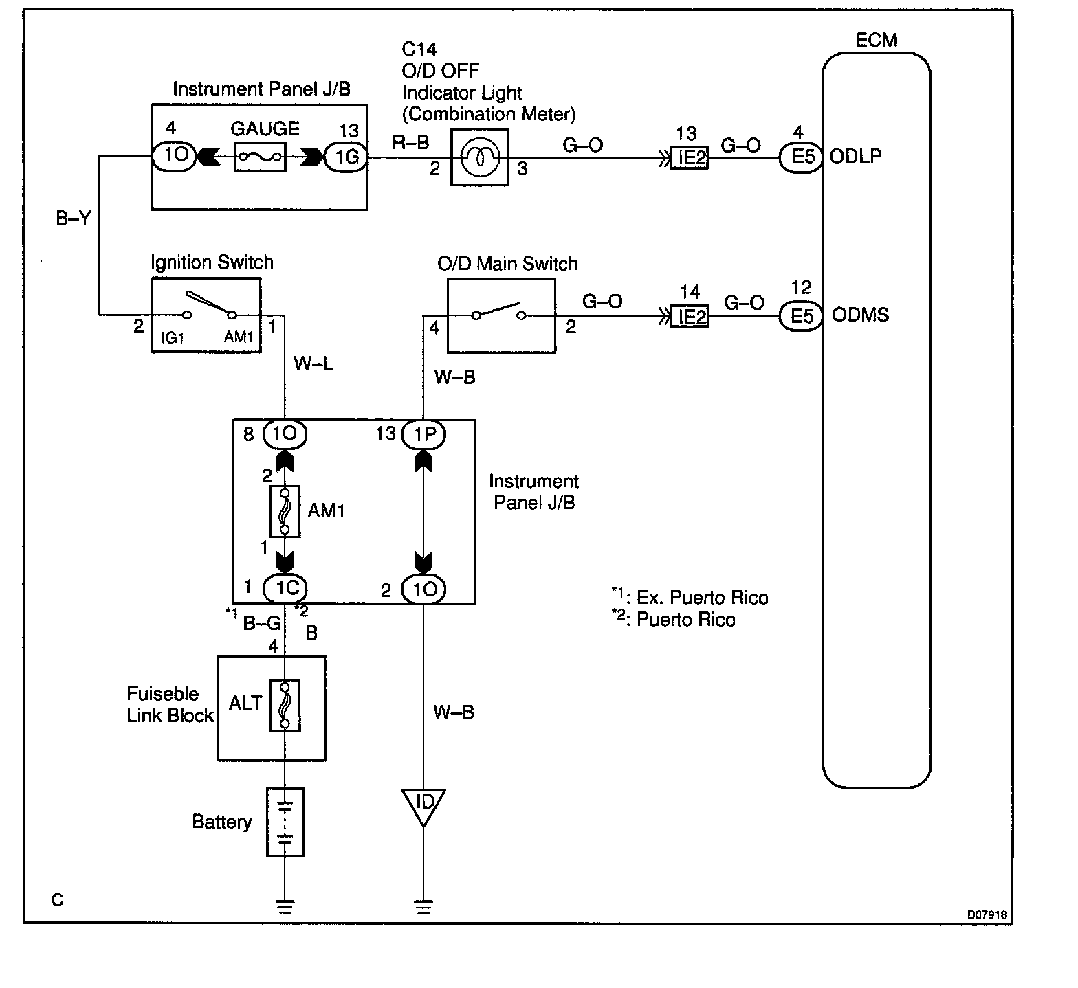 O/D Main Switch & O/D OFF Indicator Light Circuit