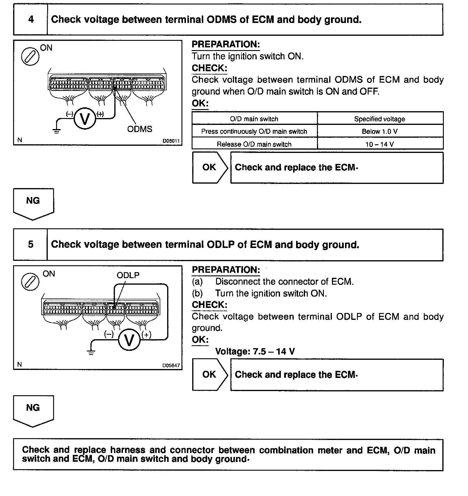 The O/D main switch is a momentary type switch. When pressing the O/D main switch, the O/D OFF indicator