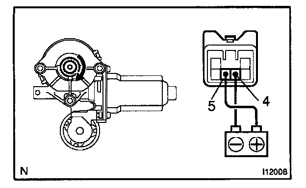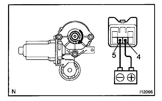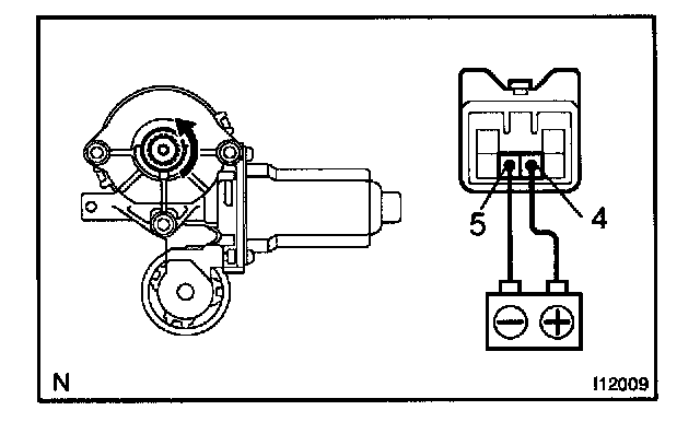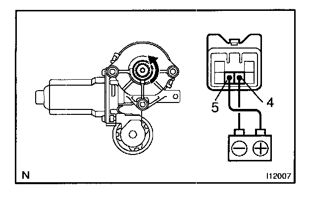 a. Connect the positive (+) lead from the battery to terminal 5 and the negative (-) lead to terminal 4, and check that the motor turns clockwise.