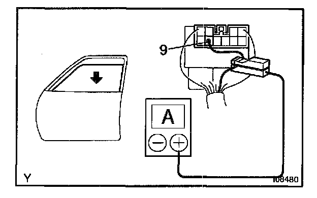 e. Check that the current increases up to approximately 14.5 A or more when the window stops going down.