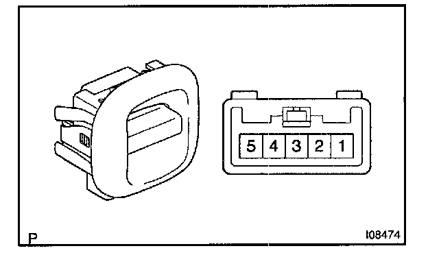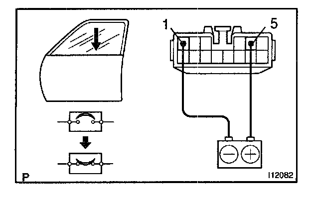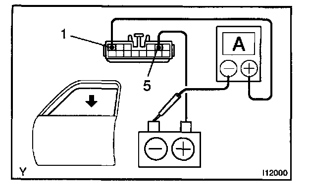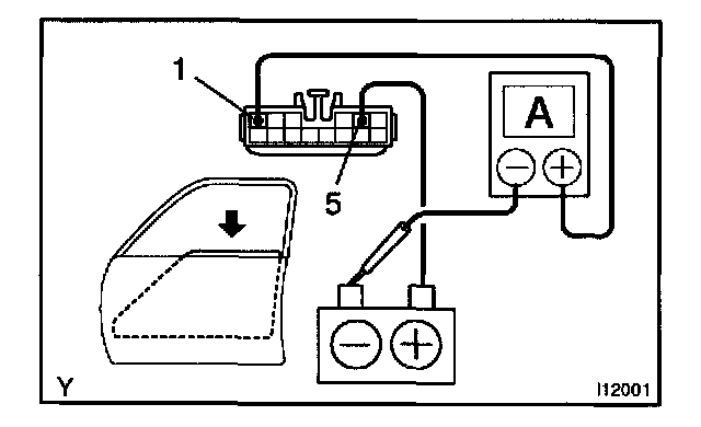 b. Connect the positive (+) lead from the battery to terminal 1 and the negative (-) lead to terminal 5 on the wire harness side connector and raise the window to full closed position.